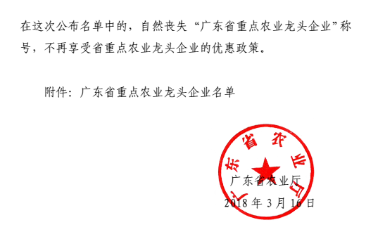 熱烈祝賀華南生物被認定為“廣東省重點農業龍頭企業”