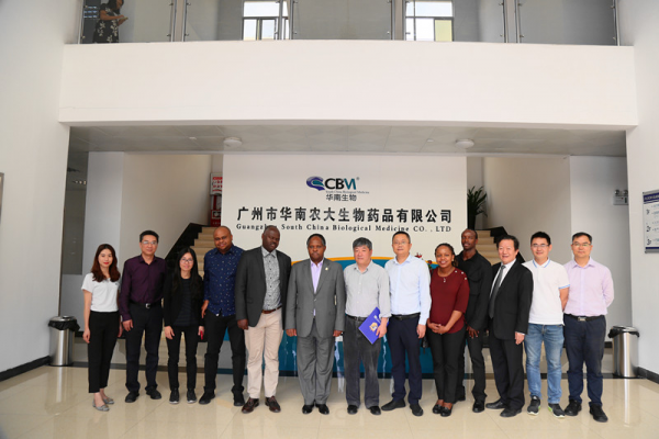 11月8日,肯尼亞內(nèi)羅畢大學(xué)團(tuán)隊(duì)在廣州謝諾中非投資管理有限公司魏曉林執(zhí)行總裁的陪同下到廣州市華南農(nóng)大生物藥品有限公司(以下簡(jiǎn)稱華南生物)進(jìn)行參觀交流。