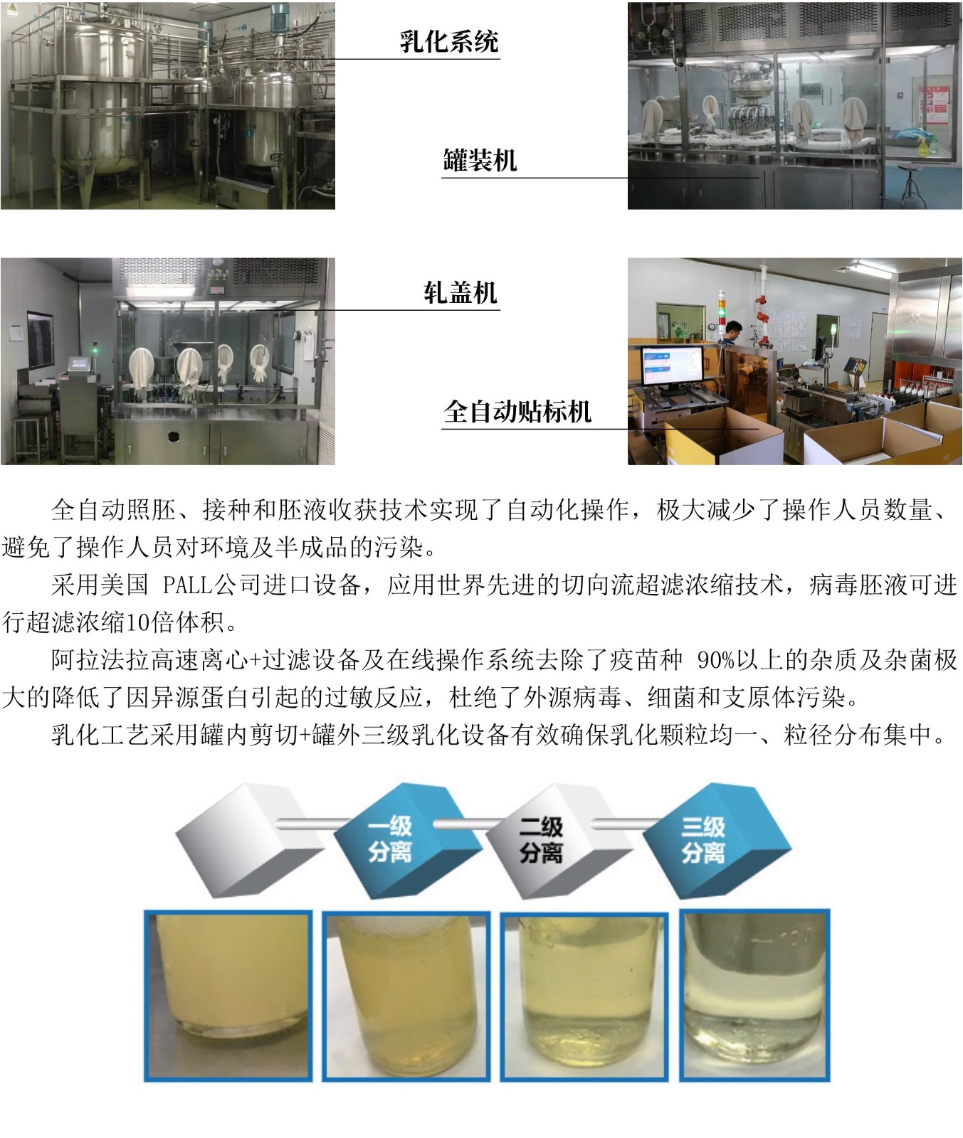 在實(shí)驗(yàn)室建設(shè)方面,公司目前已建成面積近4300平米的華南生物藥品創(chuàng)新研究院,研究院院長葉賀佳擔(dān)任,下設(shè)8大技術(shù)平臺,其中包括流感技術(shù)平臺、基因工程技術(shù)平臺、細(xì)胞工藝技術(shù)平臺、發(fā)酵工藝技術(shù)平臺、工藝革新技術(shù)平臺、診斷中心技術(shù)平臺、實(shí)驗(yàn)動物注冊平臺、產(chǎn)品注冊平臺,技術(shù)平臺涵蓋了家禽、寵物、水產(chǎn)疫苗研發(fā)的各個流程。此外研究院還配備了功能完善的實(shí)驗(yàn)場所,其中包括潔凈細(xì)胞培養(yǎng)室、懸浮細(xì)胞工程實(shí)驗(yàn)室、反向遺傳實(shí)驗(yàn)室、基因工程實(shí)驗(yàn)室、外源病毒檢測室、微生物實(shí)驗(yàn)室、發(fā)酵工程實(shí)驗(yàn)室、乳化工藝實(shí)驗(yàn)室、分子生物學(xué)實(shí)驗(yàn)室等各專業(yè)實(shí)驗(yàn)室,基本滿足項(xiàng)目產(chǎn)品研發(fā)及小試等需求。為了進(jìn)一步提高技術(shù)研發(fā)水平,創(chuàng)新研究院配備了價值超過1000萬元的先進(jìn)研發(fā)、檢測、中試等設(shè)備,其中包括微量移液器、高剪切分散乳化機(jī)、真空冷凍干燥機(jī)、高速冷凍離心機(jī),全自動核酸提取儀、熒光定量PCR儀、超低溫產(chǎn)箱、酶標(biāo)儀、純化設(shè)備、粘度儀、熒光顯微鏡、CO2培養(yǎng)箱等,完善的實(shí)驗(yàn)場所以及大量高端性能的研發(fā)、檢測設(shè)備,能更好保證所有研發(fā)項(xiàng)目的實(shí)驗(yàn)儀器、場地需求。