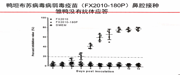 疫苗無法通過黏膜免疫產生有效的免疫應答,只能通過肌肉注射的方式,免疫后4-6天能夠產生中和抗體,但應該考慮過早免疫,雛鴨母源抗體的影響,同時也應該考慮免疫后抗體持續期能否保護至出欄,所以應該進行科學的抗體監測來制定合理的免疫方案。