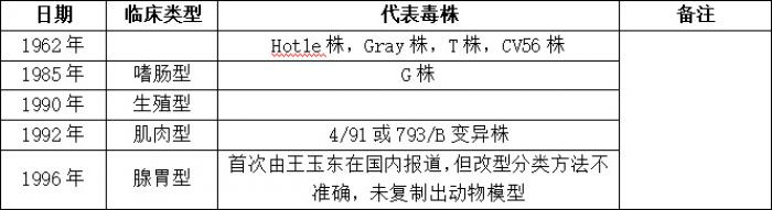 雞傳染性支氣管炎是一種廣泛存在的對家禽業(yè)造成巨大經(jīng)濟影響的家禽疾病。不斷出現(xiàn)的新的IBV基因型及不同基因型之間缺少交叉保護已經(jīng)成為防控IBV的重要挑戰(zhàn)。IBV致病型(臨床型)與IBV毒株血清型/基因型之間并無必然的聯(lián)系,不同血清型或基因型毒株可能屬于相同致病型。同時,屬于同一血清型或基因型的IBV毒株可能屬于不同致病型?,F(xiàn)就雞傳染性支氣管炎病毒臨床分型和代表毒株說明如下: